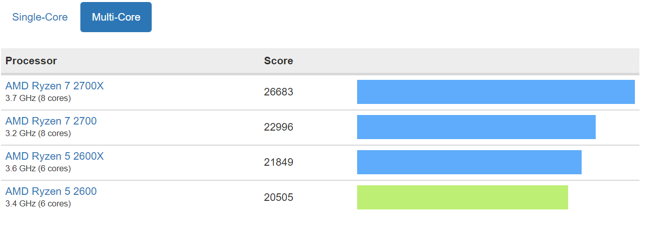 Alright, now for the fun part. Below is a chart of the Geekbench scores of the other Zen+ CPUs.